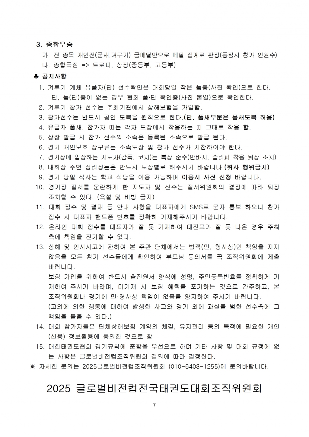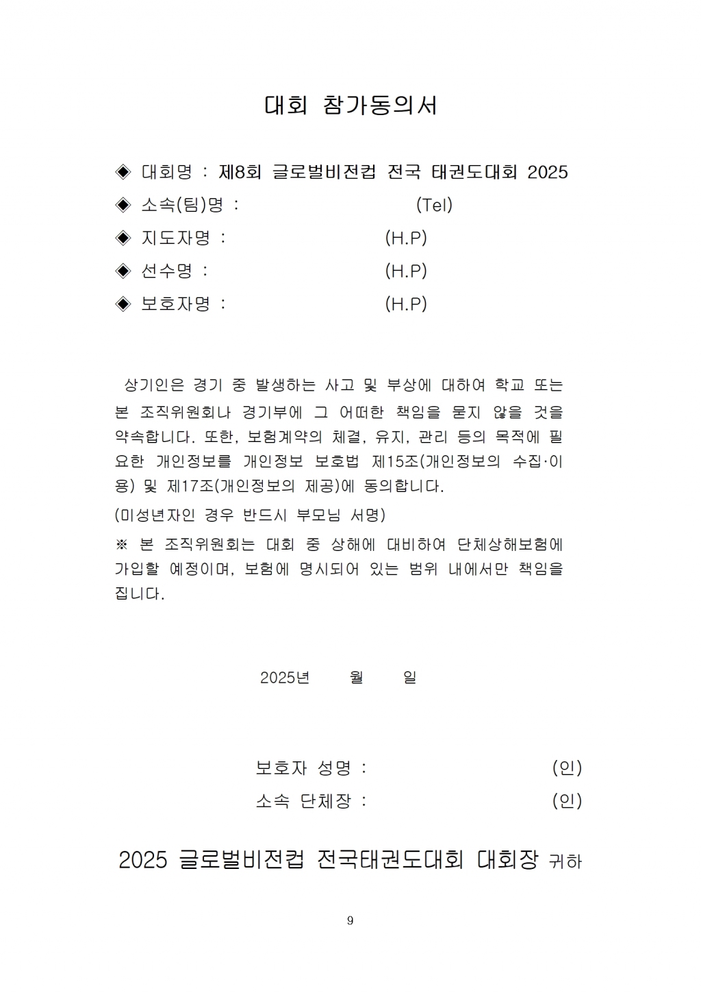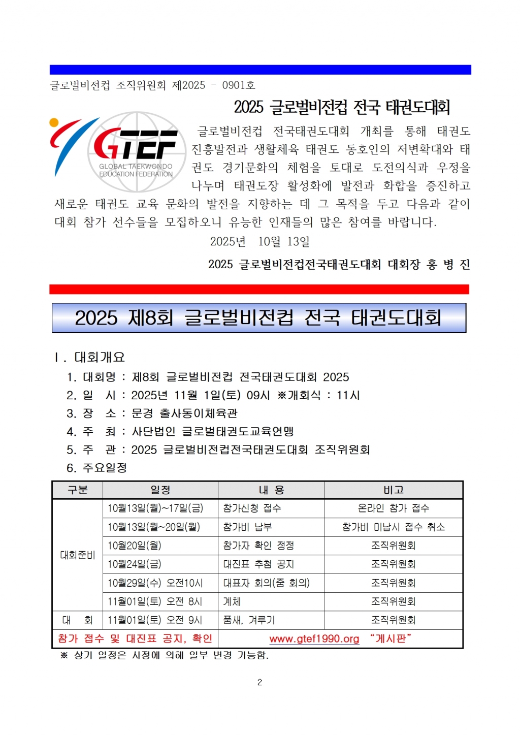 2025 글로벌비전컵 전국태권도대회 대회요강